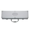 Kit churrasco 4 peças em maleta de alumínio com relevo. Possui: espátula, pegador, garfo e faca em inox(todas peças possuem proteção plástica) detalhes em metal nas bordas da maleta, duas dobradiças na parte inferior, uma alça e duas presilhas para travar/abrir maleta. Parte interna revestida de tecido tnt e velcro para guardar as peças.