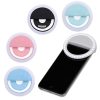 Anel de iluminação para celular, utilizado para fotos em formato selfie. “Ring light” plástico no formato “presilha” para encaixe, possui três estágios de iluminação acionados pelo botão superior. Acompanha cabo USB para carregamento.