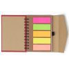 Bloco de anotações ecológico com autoadesivos e suporte para caneta. Bloco de capa colorida com abertura lateral imantada, primeira folha com cinco blocos autoadesivos coloridos com aproximadamente 25 folhas e aproximadamente 68 folhas brancas pautadas. Ultima página kraft conta com suporte para caneta em nylon(não acompanha caneta).